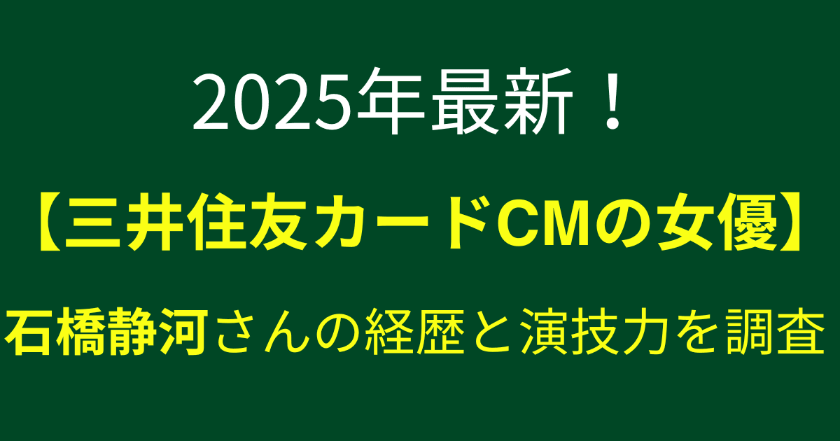 この記事では、石橋静河さんが出演する三井住友カードCMの魅力に迫るとともに、彼女の経歴や人々を惹きつける演技力の秘密を調査しました。これを読めば、あなたもきっと石橋静河さんのファンになるはずです!